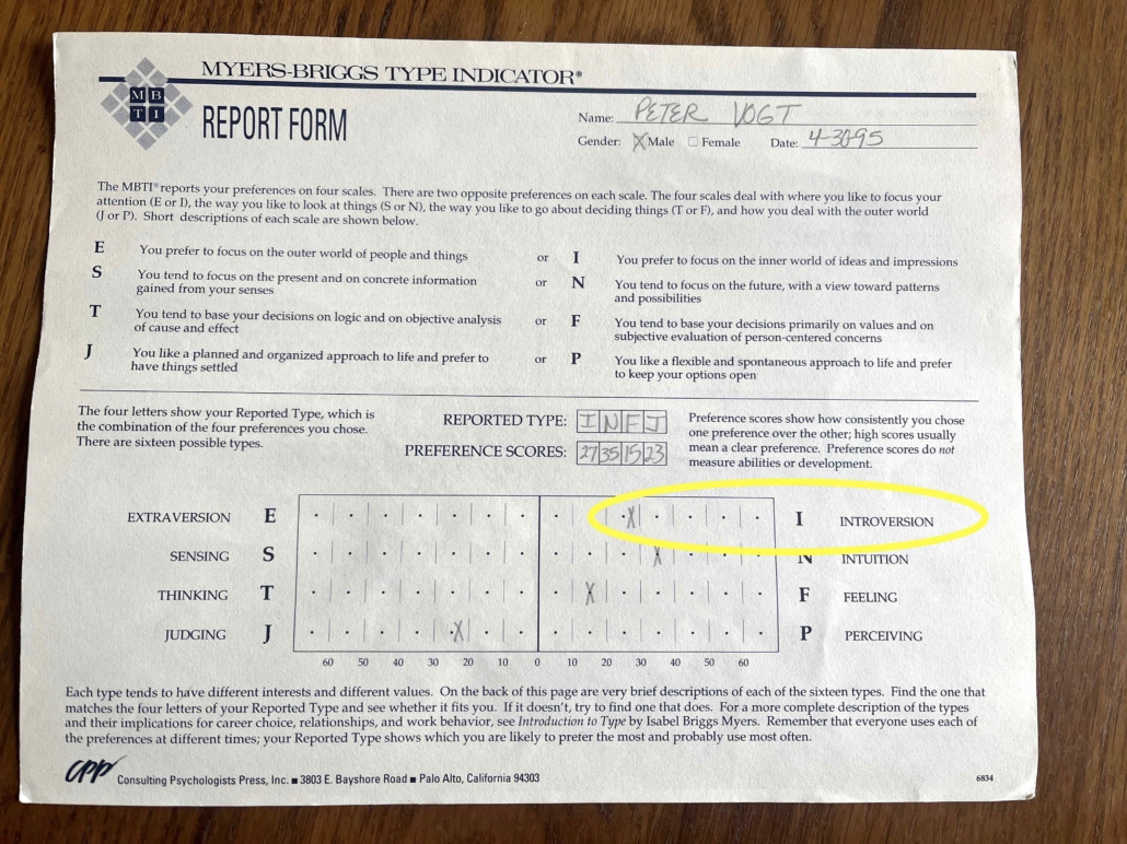 I was frozen—staring at my score on the first scale of the Myers-Briggs Type Indicator®.